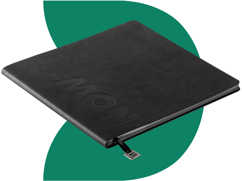 Nous travaillons avec Atlas Copco depuis de nombreuses années pour leurs carnets d’entreprise. Chaque année, bien que nous explorions différents designs, ce carnet a été particulièrement apprécié grâce à son impression sur toute la surface et ses accessoires personnalisés. En personnalisant le bloc intérieur en fonction de son public cible, l’entreprise a ainsi atteint son objectif d’une plus grande visibilité.