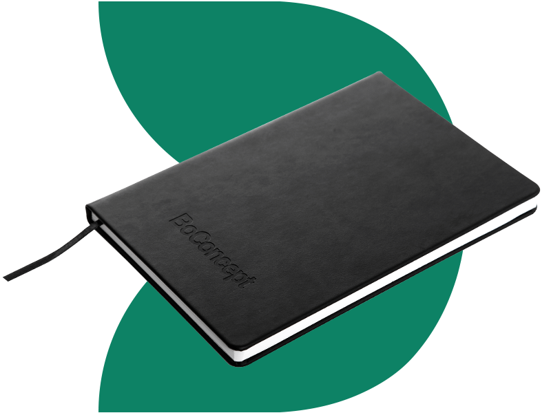 Nous avons conçu un carnet pour BoConcept reflétant leur collection de meubles. Ils ont beaucoup apprécié ce carnet noir, à la fois minimaliste et représentant leurs designs uniques.