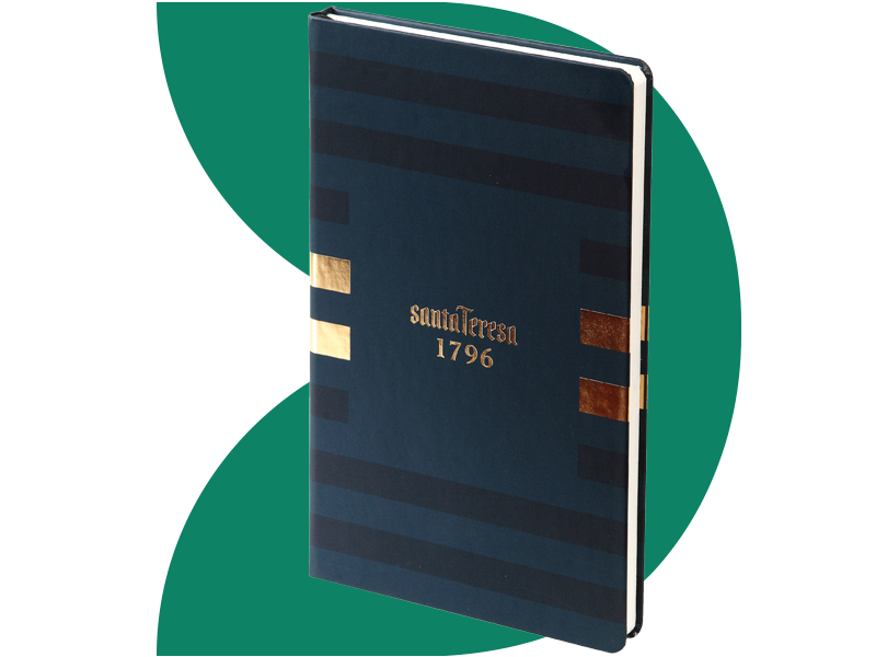 Un carnet peut-il être à la fois minimaliste et scintillant ? Pour Santa Teresa, nous avons créé ce carnet en ajoutant une touche brillante grâce à l'impression dorée.