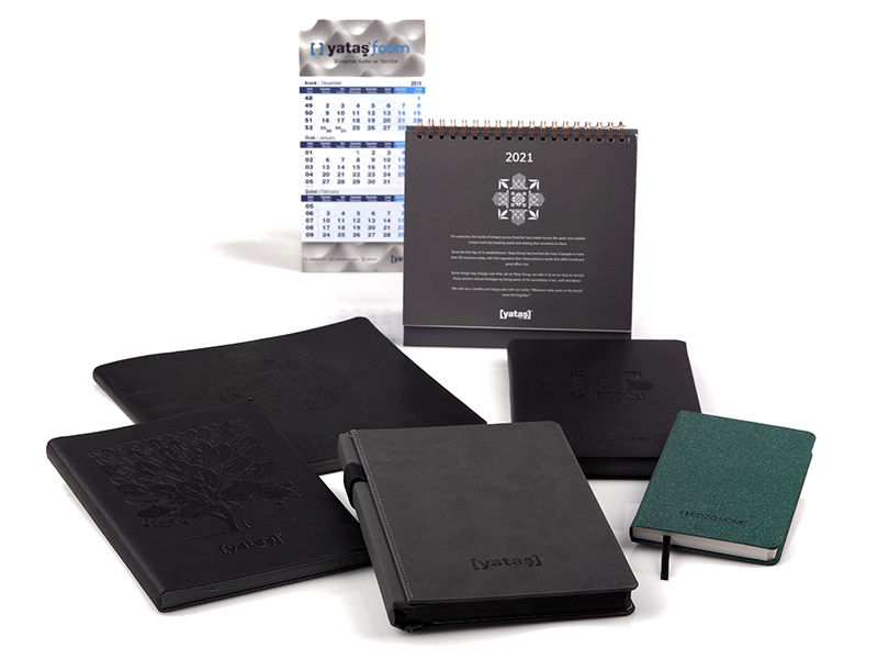 Les carnets et calendriers de bureau que nous avons produits spécialement pour la marque Yataş reflètent l'élégance et le professionnalisme de la marque. Les carnets à couverture en cuir noir et les calendriers de bureau au design personnalisé, fabriqués à partir de matériaux de haute qualité, sont à la fois fonctionnels et esthétiquement remarquables. Ces produits, représentant au mieux l'identité corporative de Yataş, ont été conçus pour une utilisation durable et pour laisser une impression durable.