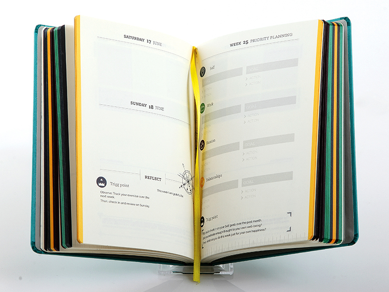 Pourquoi toutes les pages d'un carnet devraient-elles être identiques ? Chez DIVAL, vous êtes libre de concevoir votre agenda ! Il est possible de concevoir chaque page du carnet séparément et d'ajouter des messages ou des planificateurs différents sur des pages différentes.