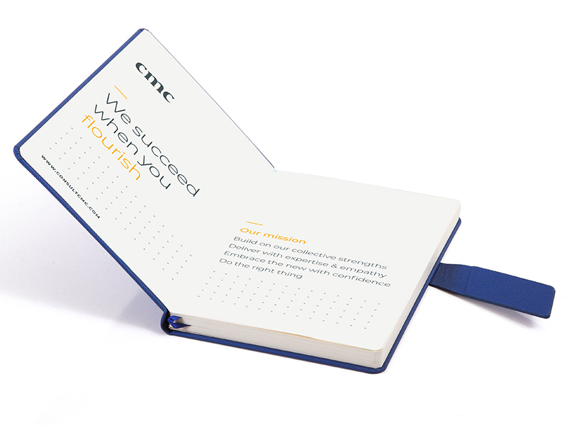 Afin de donner un message percutant et profond, nous appliquons le message ou le logo de votre marque sur la tranche de votre carnet.